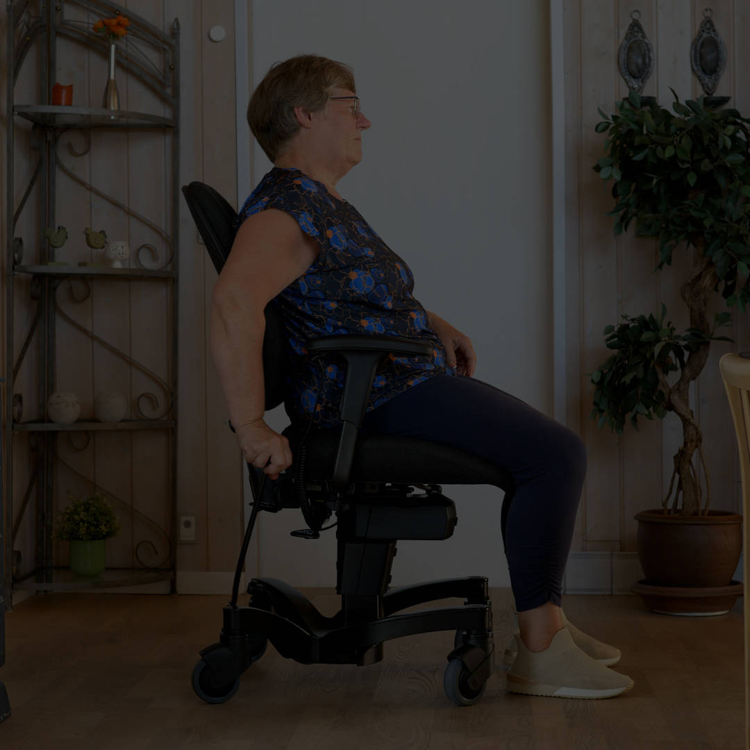 Move effortlessly between sitting and standing with the push of a button. The powered lift helps you reach countertops or sit down safely — no straining, no assistance needed.