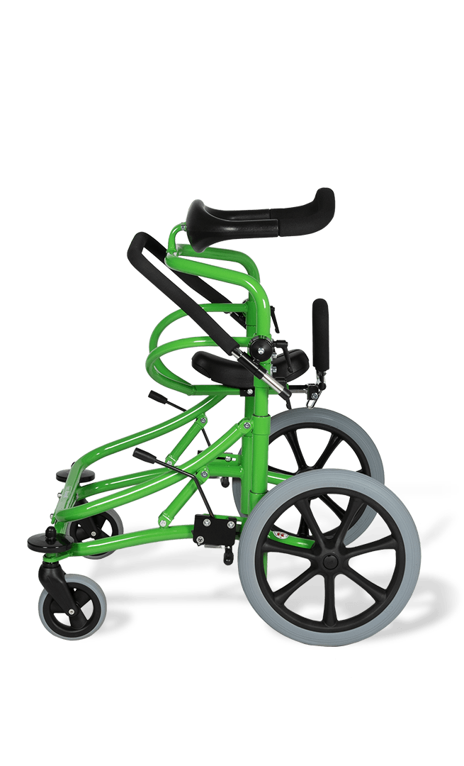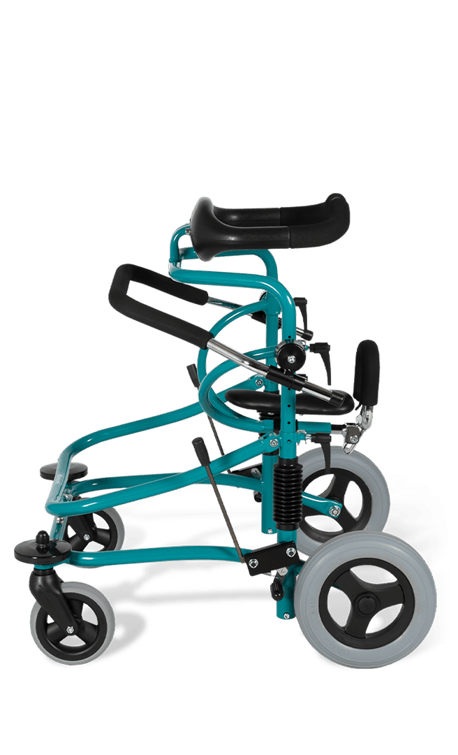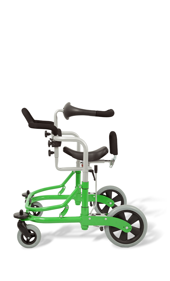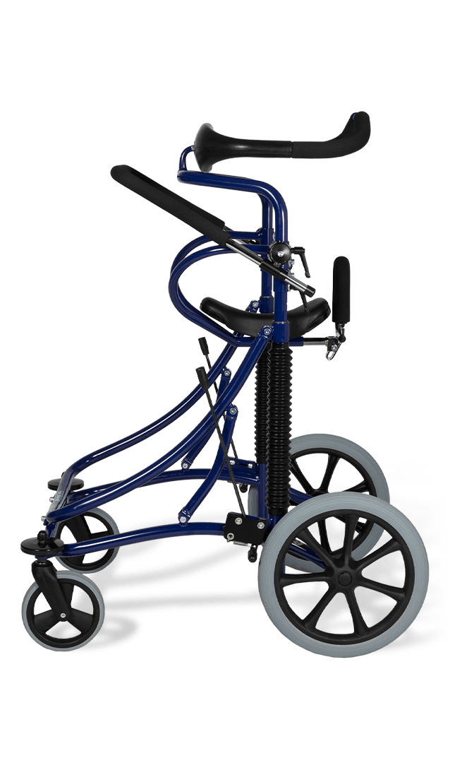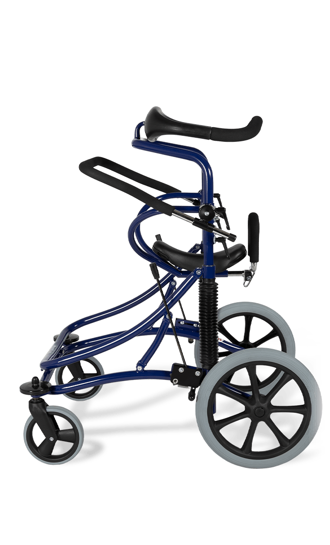 Designed with a dynamic seat and a unique spring system, the gait trainer follows the user’s movements, ensuring optimal weight-bearing. The body ring allows for movement of the trunk while supporting an optimal upright posture.