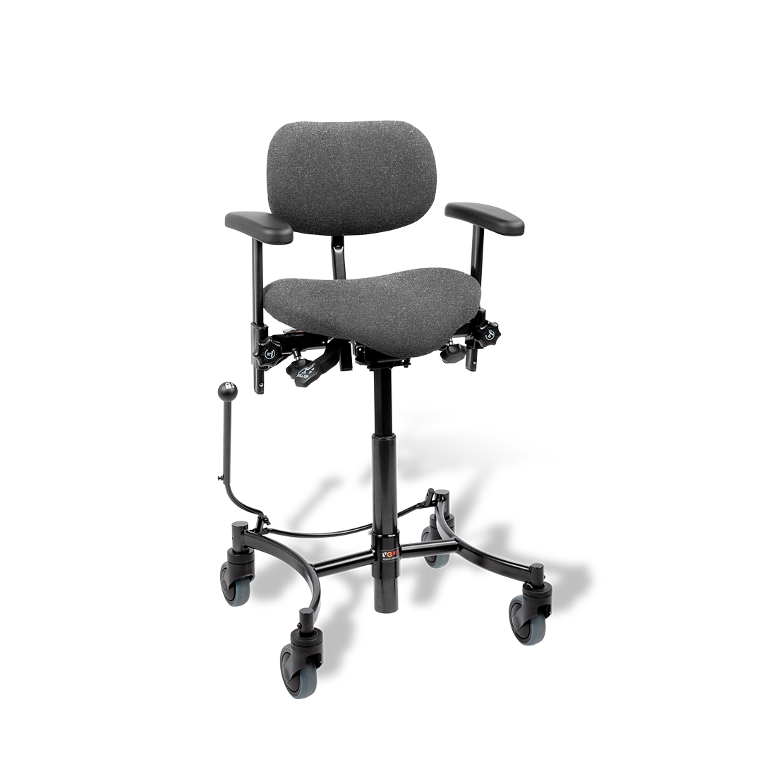 VELA Salsa is a series of sit-stand chairs with a central brake. The chair promotes the user’s independence at different activities, because of a safe, high workplace.