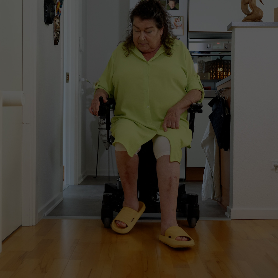 VELA chairs are CE-marked and tested for use on flat, even surfaces where all wheels have contact with the floor. For the best and safest experience, we recommend removing door thresholds and small level differences – this makes it easier and safer to move around the home with the chair.