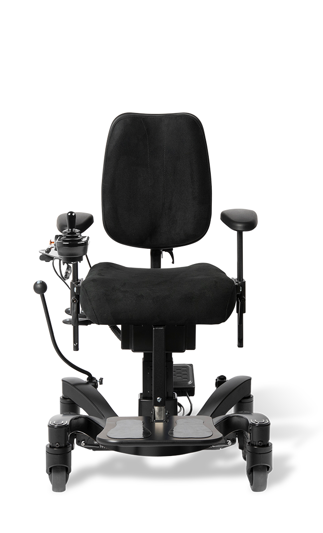 Unlike many seats on wheels, a VELA seat allows a person to use the seat completely independently. The braking system can be operated by the user whilst seated. The High – low controls are positioned to enable independent access in daily life.