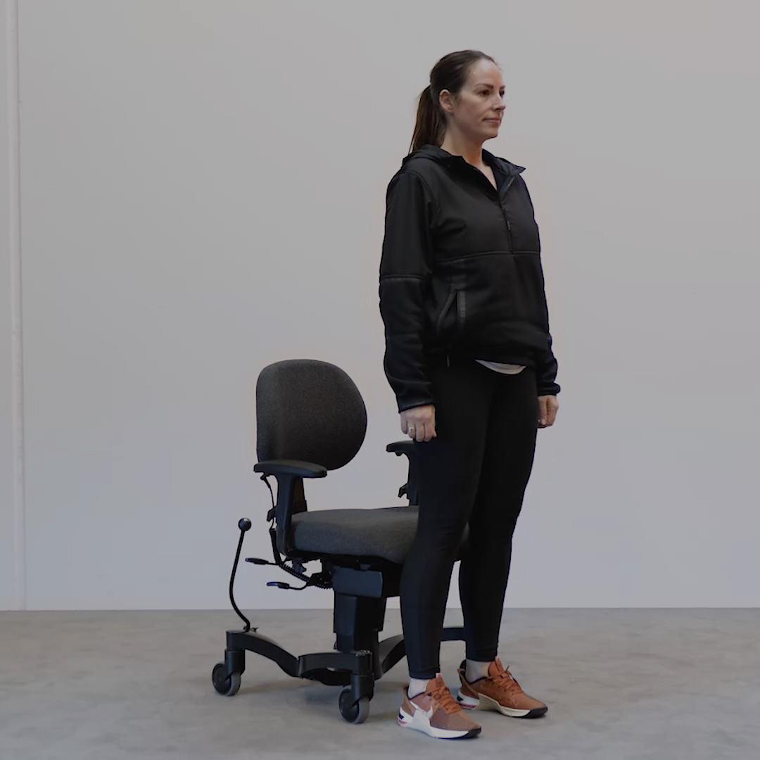 The built-in lift supports a safe transition from sitting to standing — ideal for users with reduced strength or mobility.